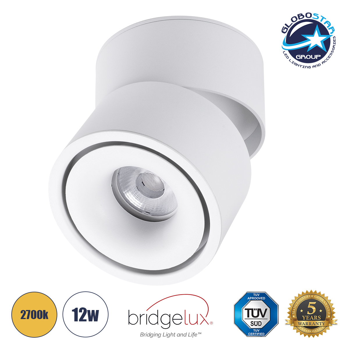 GLOBOSTAR® OMEGA-S 60299 Κινούμενο Downlight Σποτ LED 12W 1500lm 36° AC 220-240V IP20 Θερμό Λευκό 2700K – Bridgelux COB Chip & TÜV SÜD Driver – Λευκό Ματ – Μ10 x Π10 x Υ10.5cm – 5 Χρόνια Εγγύηση