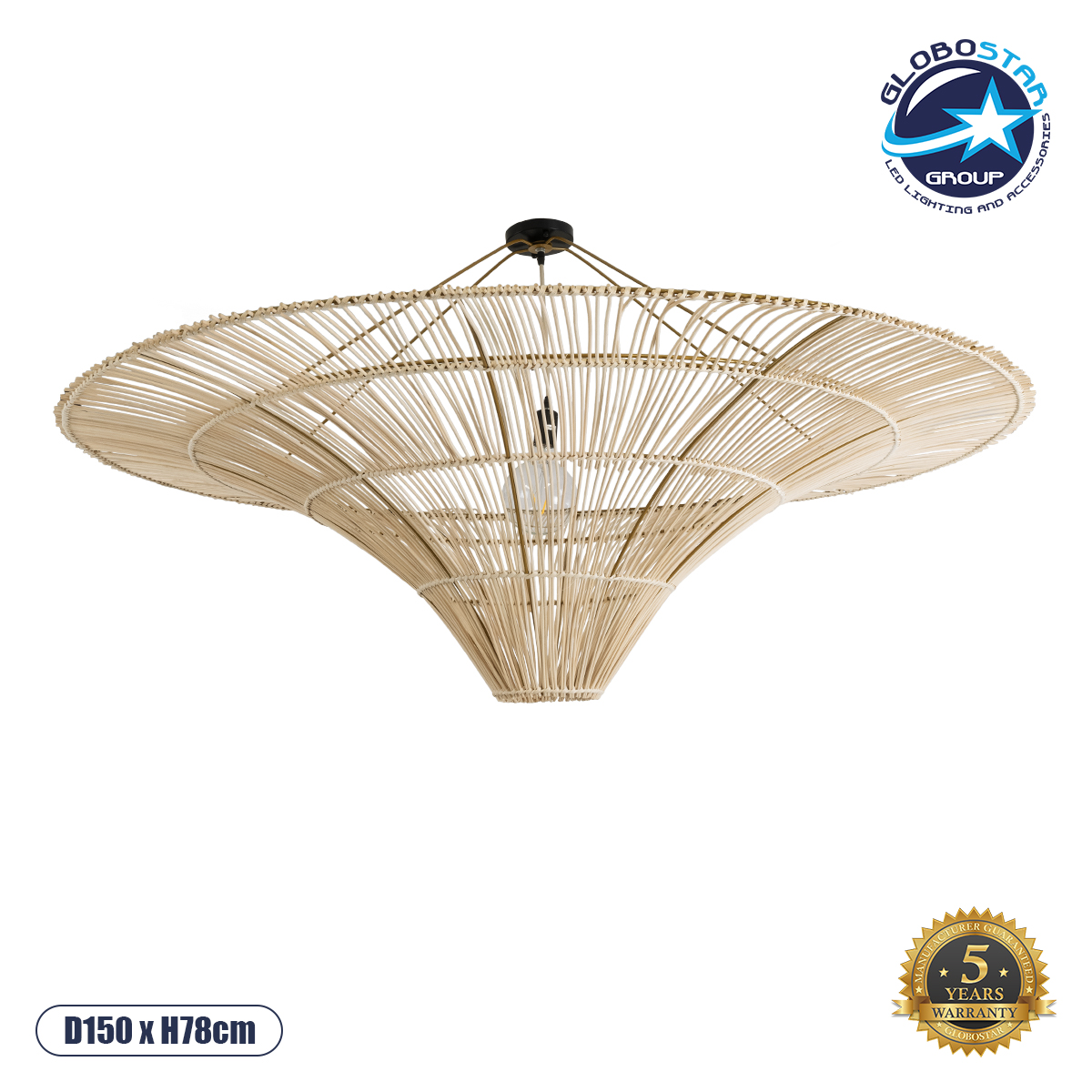 GLOBOSTAR® PALERMO 02309 Boho Φωτιστικό Οροφής με Ντουί 1 x E27 AC 220-240V IP20 – Μπεζ – Μ150 x Π150 x Υ78cm