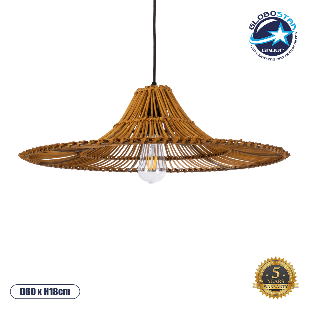 GLOBOSTAR® PALERMO 02310 Boho Κρεμαστό Φωτιστικό Οροφής με Ντουί 1 x E27 AC 220-240V IP20 – Καφέ – Μ60 x Π60 x Υ18cm