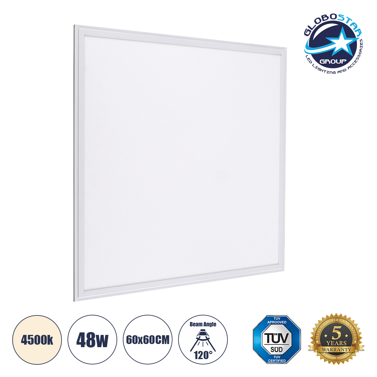 GLOBOSTAR® PANELETI 60210 Χωνευτό Panel Οροφής 60×60 LED 48W 4560lm 120° UGR<19 AC 220-240V IP20 Φυσικό Λευκό 4500K - Lumileds SMD Chip & TÜV SÜD Driver - Λευκό Γαλακτερό - Μ60 x Π60 x Υ1.5cm / Q56 x 56cm - 5 Χρόνια Εγγύηση
