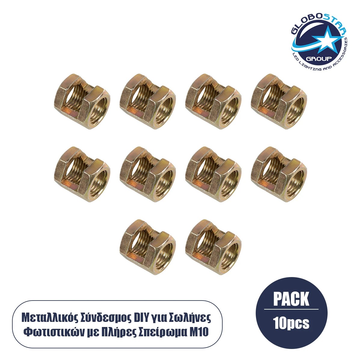 GLOBOSTAR® PIPEADAPT 79593 Μεταλλικός DIY Σύνδεσμος για Ολόπασους Σωλήνες Φωτιστικών – Μ1.3 x Π1.3 x Υ1.5cm – Πακέτο 10 Τεμαχίων