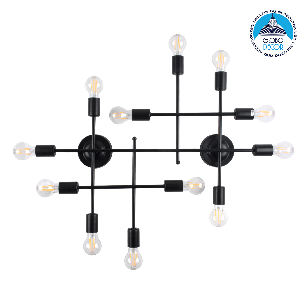 GLOBOSTAR® PIPING 00667 Vintage Φωτιστικό Τοίχου – Απλίκα με Ντουί 12 x E27 AC 220-240V IP20 – Μαύρο – Μ78.5 x Π9.5 x Υ64cm