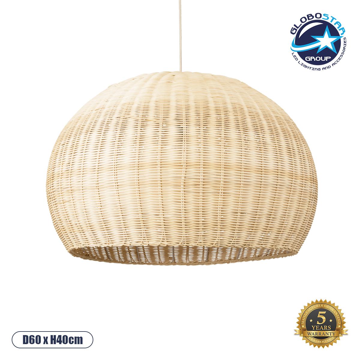 GLOBOSTAR® RAITO 01825 Boho Κρεμαστό Φωτιστικό Οροφής με Ντουί 1 x E27 AC 220-240V IP20 – Μπεζ – Μ60 x Π60 x Υ40cm