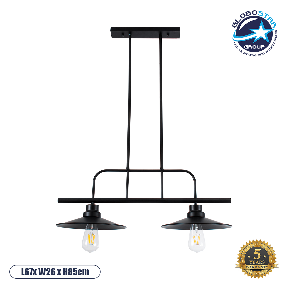 GLOBOSTAR® REGAL 01007 Vintage Φωτιστικό Οροφής με Ντουί 2 x E27 AC 220-240V IP20 – Μαύρο – Μ67 x Π26 x Υ85cm