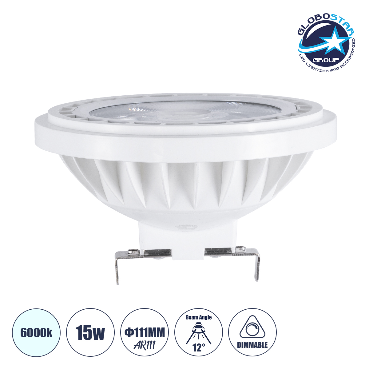 GloboStar® S-40002 Σποτ LED G53 AR111 15W 1500lm 12° AC 220-240V IP20 Φ11 x Υ7cm Ψυχρό Λευκό 6000K Dimmable – 1 Χρόνο Εγγύηση