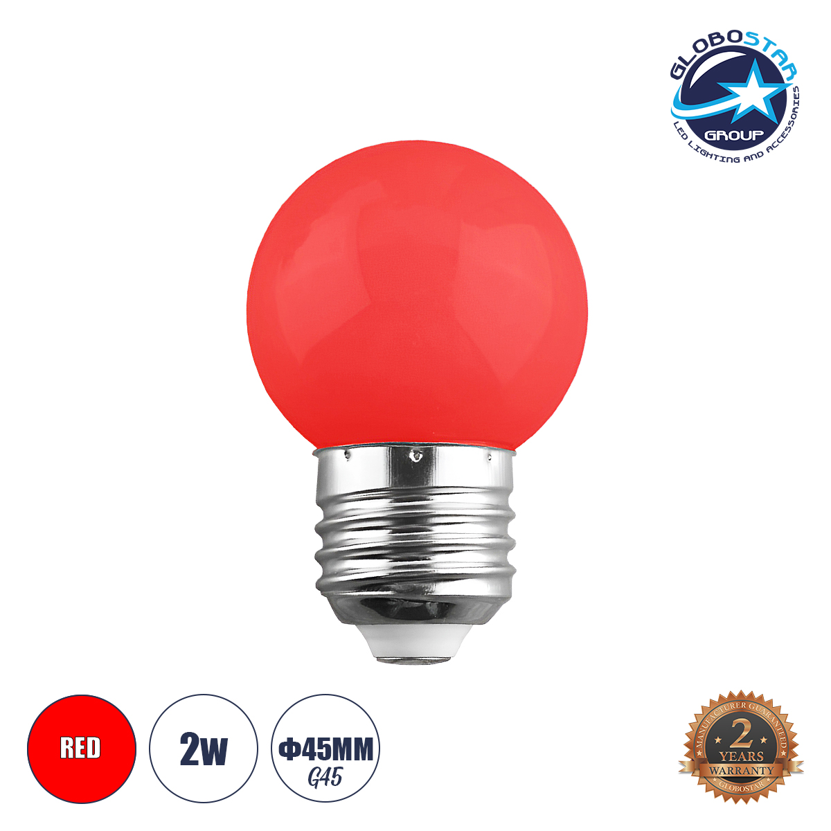 GloboStar® S-40006 Λάμπα LED E27 G45 Γλομπάκι 2W 120lm 260° AC 220-240V IP20 Φ4.5 x Υ6.9cm Κόκκινο – 2 Χρόνια Εγγύηση