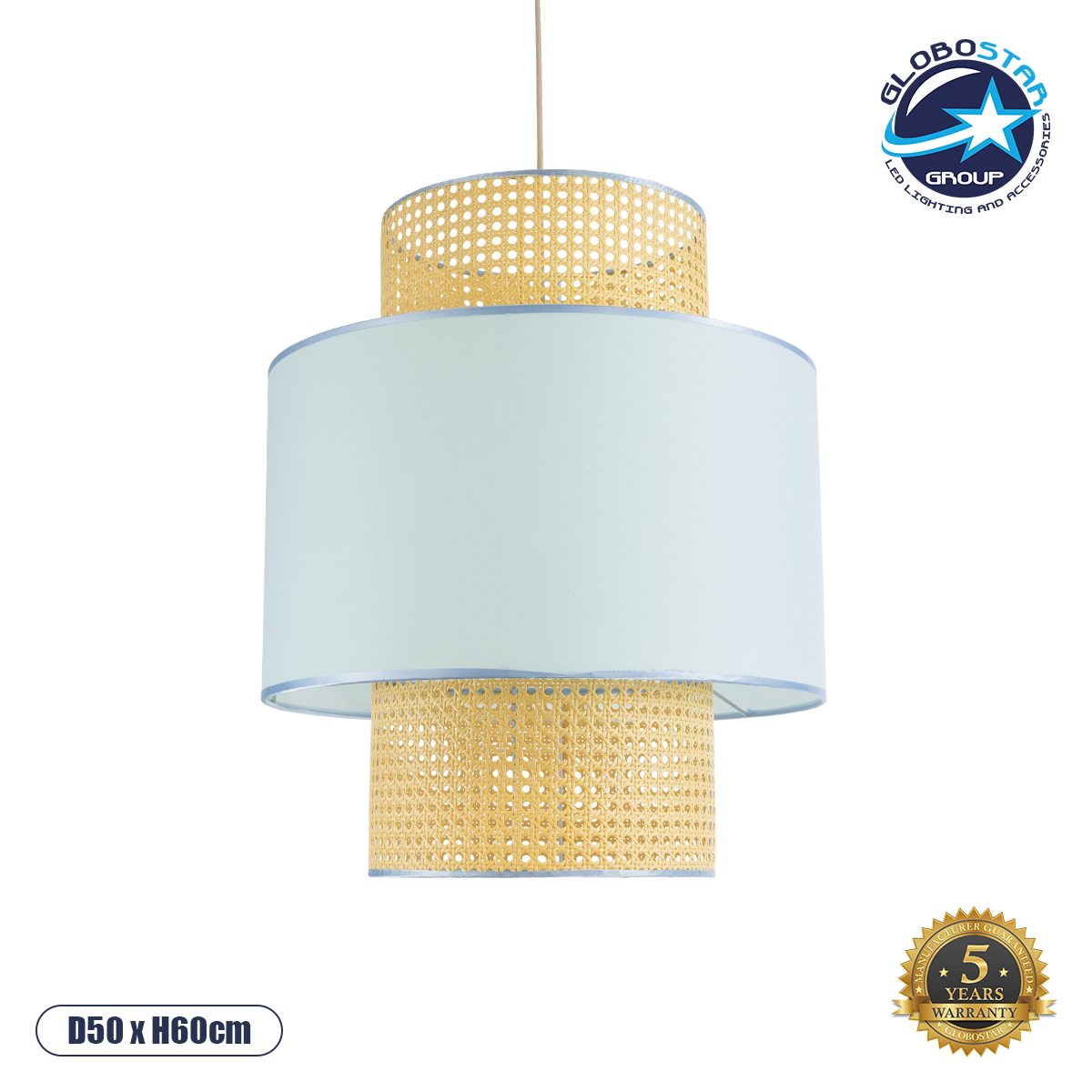 GLOBOSTAR® SAIGE 02045 Boho Κρεμαστό Φωτιστικό Οροφής με Ντουί 1 x E27 AC 220-240V IP20 – Γαλάζιο & Μπεζ – Μ50 x Π50 x Υ60cm