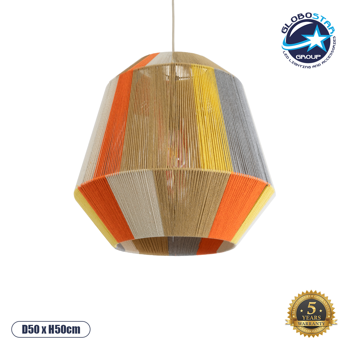 GLOBOSTAR® SALERNO 02289 Boho Κρεμαστό Φωτιστικό Οροφής με Ντουί 1 x E27 AC 220-240V IP20 – Πολύχρωμο – Μ50 x Π50 x Υ50cm