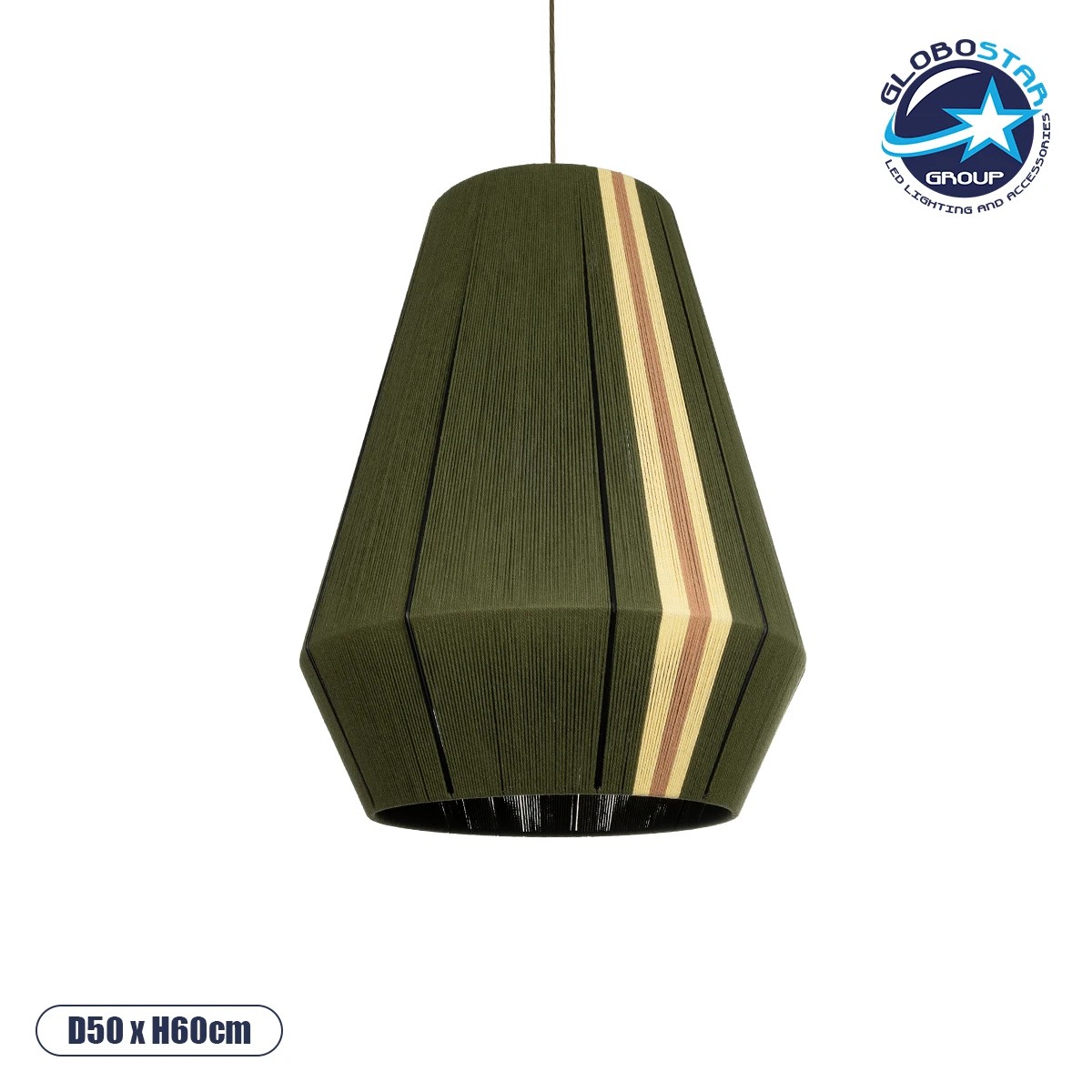 GLOBOSTAR® SALERNO 02335 Boho Κρεμαστό Φωτιστικό Οροφής με Ντουί 1 x E27 AC 220-240V IP20 – Λαδί & Μπεζ – Μ50 x Π50 x Υ60cm