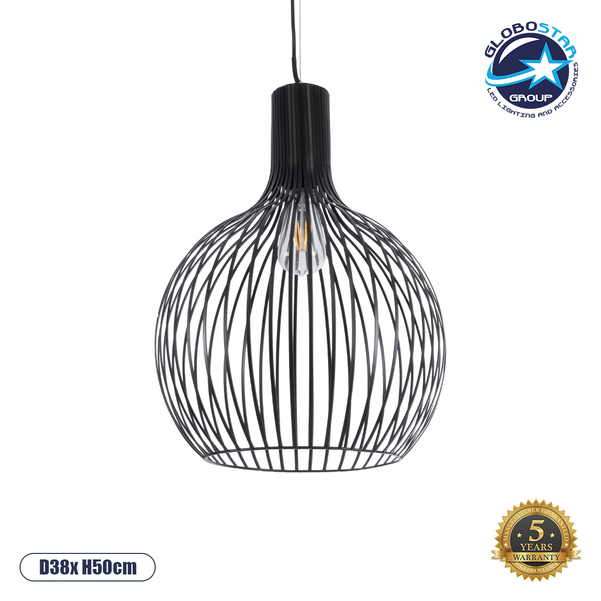 GLOBOSTAR® SCANDI 01266 Μοντέρνο Κρεμαστό Φωτιστικό Οροφής με Ντουί 1 x E27 AC 220-240V IP20 – Μαύρο – Μ38 x Π38 x Υ50cm
