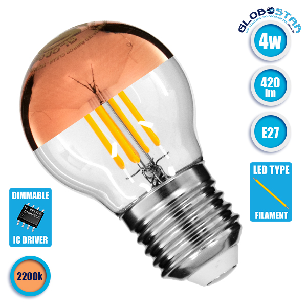 GLOBOSTAR® SPHERE 99110 Λάμπα E27 G45 LED 4W 420lm 320° AC 220-240V IP20 Ultra Θερμό Λευκό 2200K Dimmable – Filament Chip – Διάφανο με Χάλκινο Ανεστραμμένο Καθρέπτη – Μ4.5 x Π4.5 x Υ7.7cm – 3 Χρόνια Εγγύηση