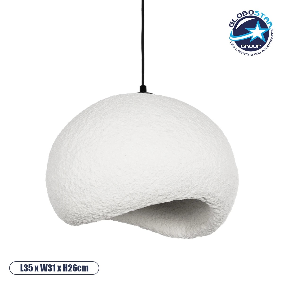GLOBOSTAR® STONE 204-0176 Μοντέρνο Κρεμαστό Φωτιστικό Οροφής με Ντουί 1 x E27 AC 220-240V IP20 – Λευκό – Μ31.5 x Π35 x Υ26cm