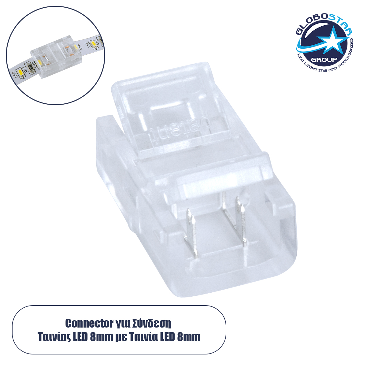 GLOBOSTAR® STRIPCON 70683 Ταχυσύνδεσμος για Μονόχρωμη Ταινία LED 8mm σε 8mm IP20 – Διάφανο – Μ1.7 x Π1.1 x Υ0.7cm