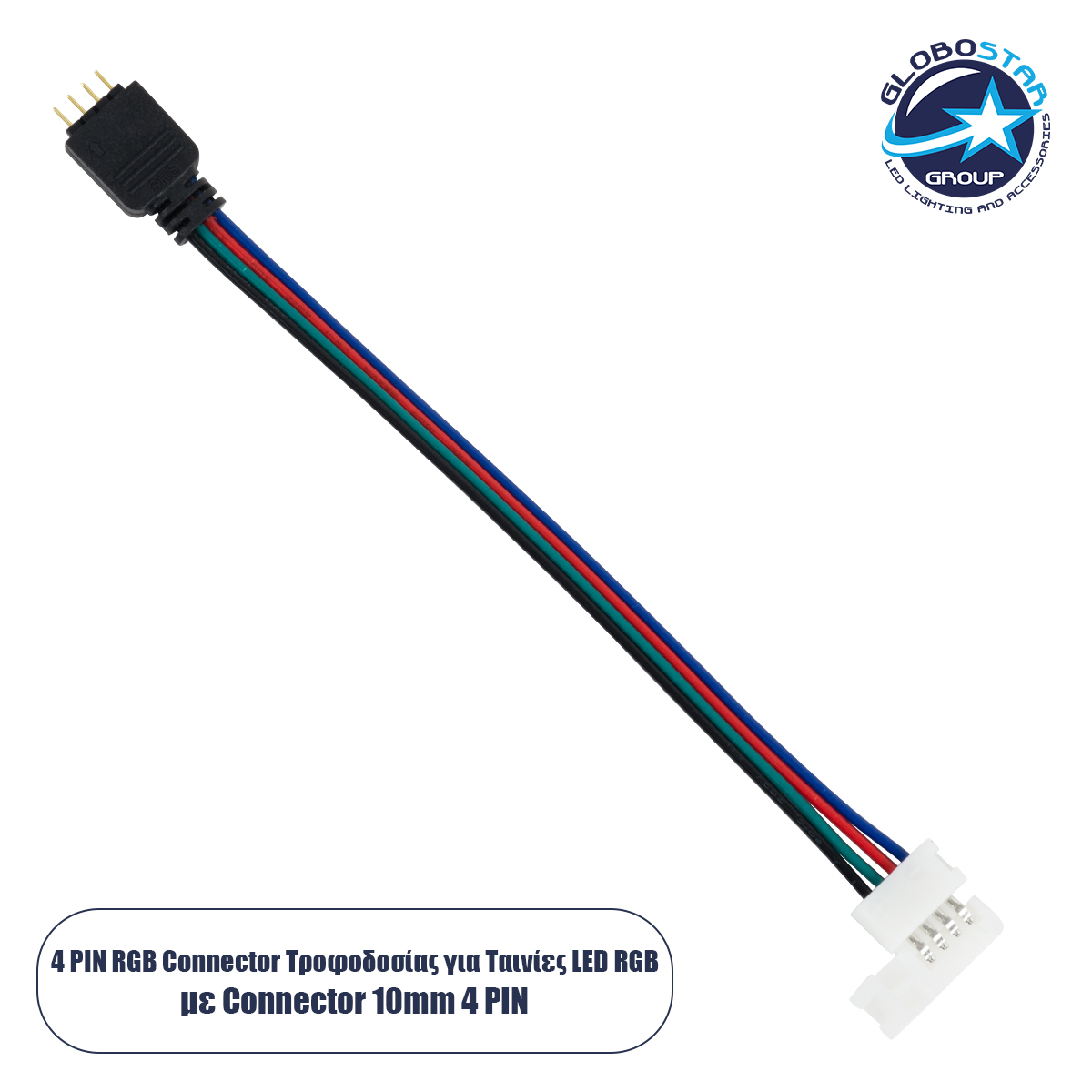 GLOBOSTAR® STRIPCON 70691 Ταχυσύνδεσμος για Ταινία LED RGB 10mm σε 4 Pin Αρσενικό Σύνδεσμο IP20 – Πολύχρωμο – Μ17 x Π1.5 x Υ0.4cm