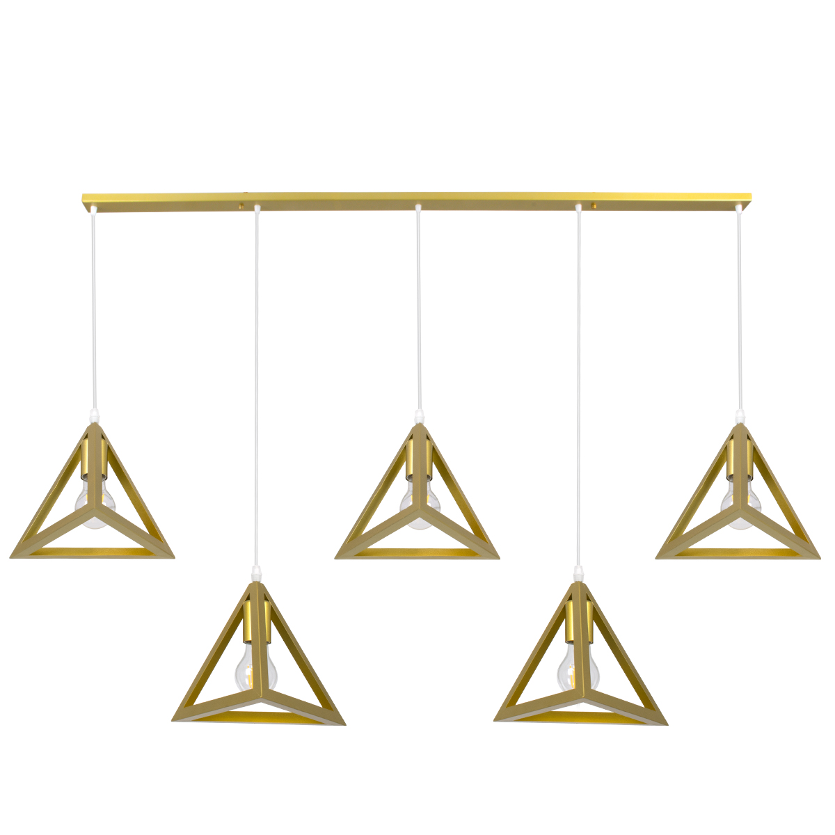 GLOBOSTAR® TRIANGLE 00610 Μοντέρνο Κρεμαστό Φωτιστικό Οροφής με Ντουί 5 x E27 AC 220-240V IP20 – Χρυσό – Μ170 x Π22 x Y130cm