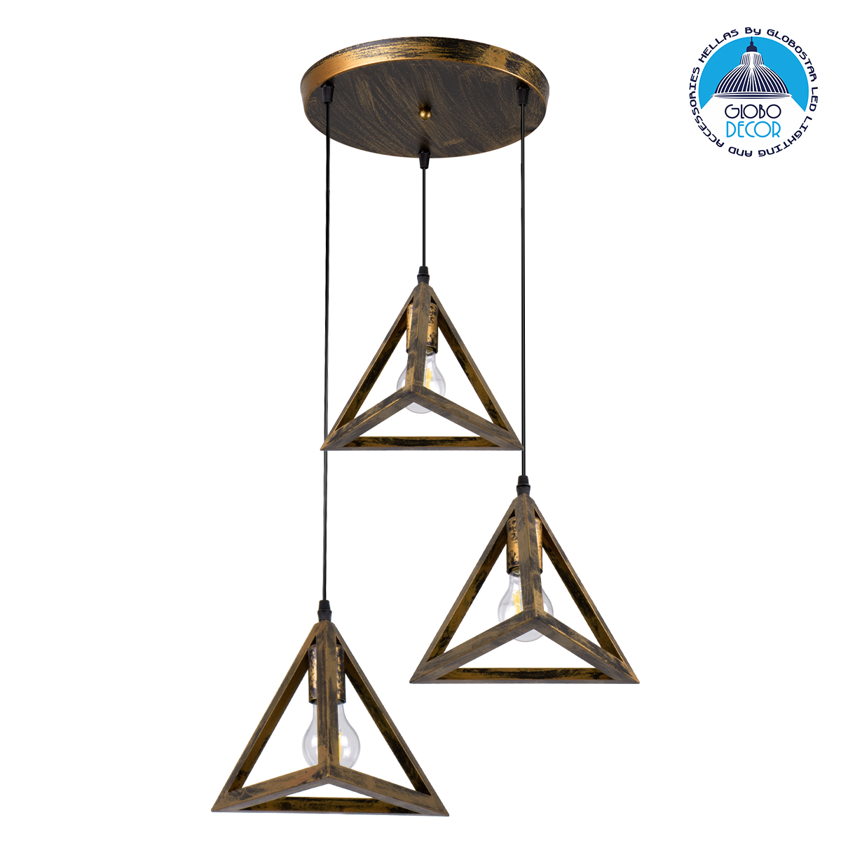 GLOBOSTAR® TRIANGLE 00619 Μοντέρνο Κρεμαστό Φωτιστικό Οροφής με Ντουί 3 x E27 AC 220-240V IP20 – Μπρούτζινο – Μ49 x Π49 x Y130cm