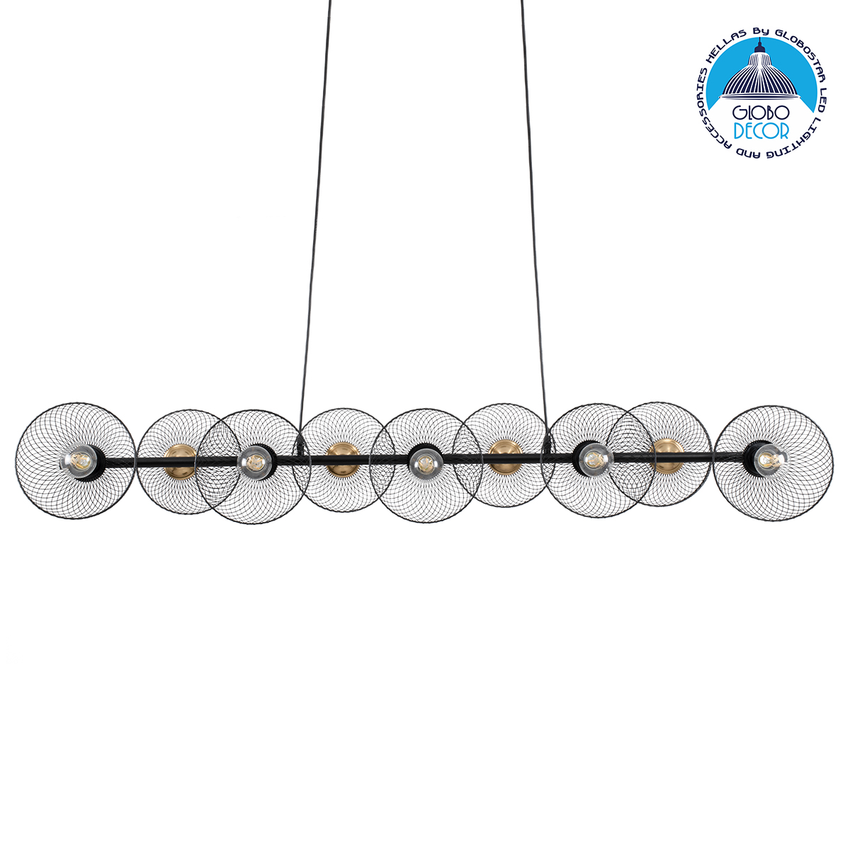 GLOBOSTAR® VERONA 00588 Μοντέρνο Κρεμαστό Φωτιστικό Οροφής με Ντουί 9 x E27 AC 220-240V IP20 – Μαύρο & Χρυσό – Μ140 x Π28 x Υ20cm