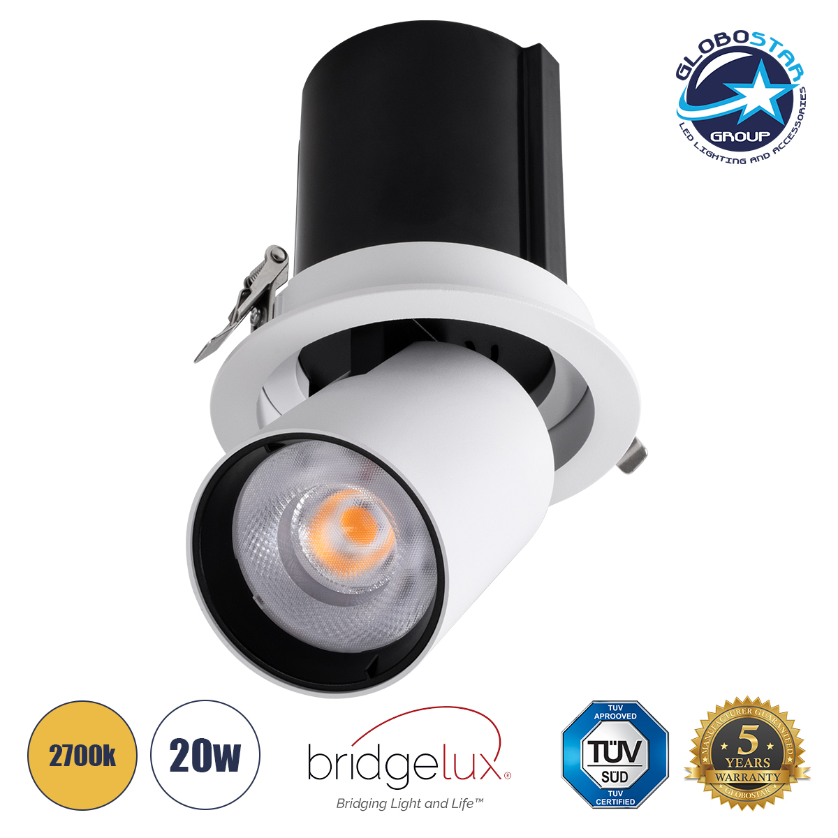 GLOBOSTAR® VIRGO-B 60311 Χωνευτό Κινούμενο Downlight Σποτ LED 20W 2500lm 36° AC 220-240V IP20 Θερμό Λευκό 2700K – Bridgelux COB Chip & TÜV SÜD Driver – Λευκό & Μαύρο Ματ – Μ13.5 x Π13.5 x Υ14cm / Q11.5cm – 5 Χρόνια Εγγύηση