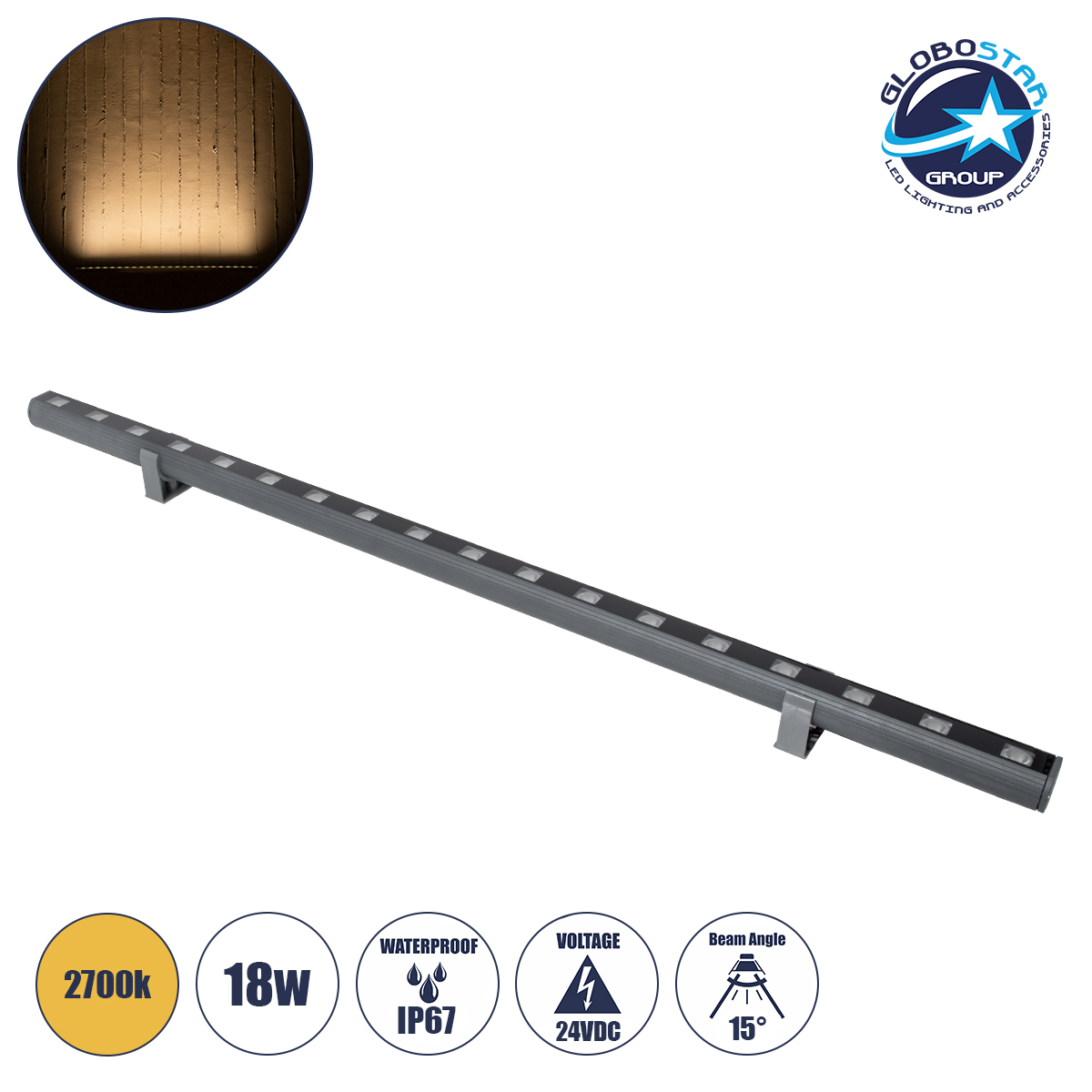 GLOBOSTAR® WASHERPANDA 90579 Μπάρα Φωτισμού Wall Washer LED 18W 1980lm 15° DC 24V Αδιάβροχο IP65 Θερμό Λευκό 2700K Dimmable – Bridgelux SMD Chip – Γκρι Ανθρακί Ματ – Μ100 x Π4 x Υ3.5cm – 3 Χρόνια Εγγύηση