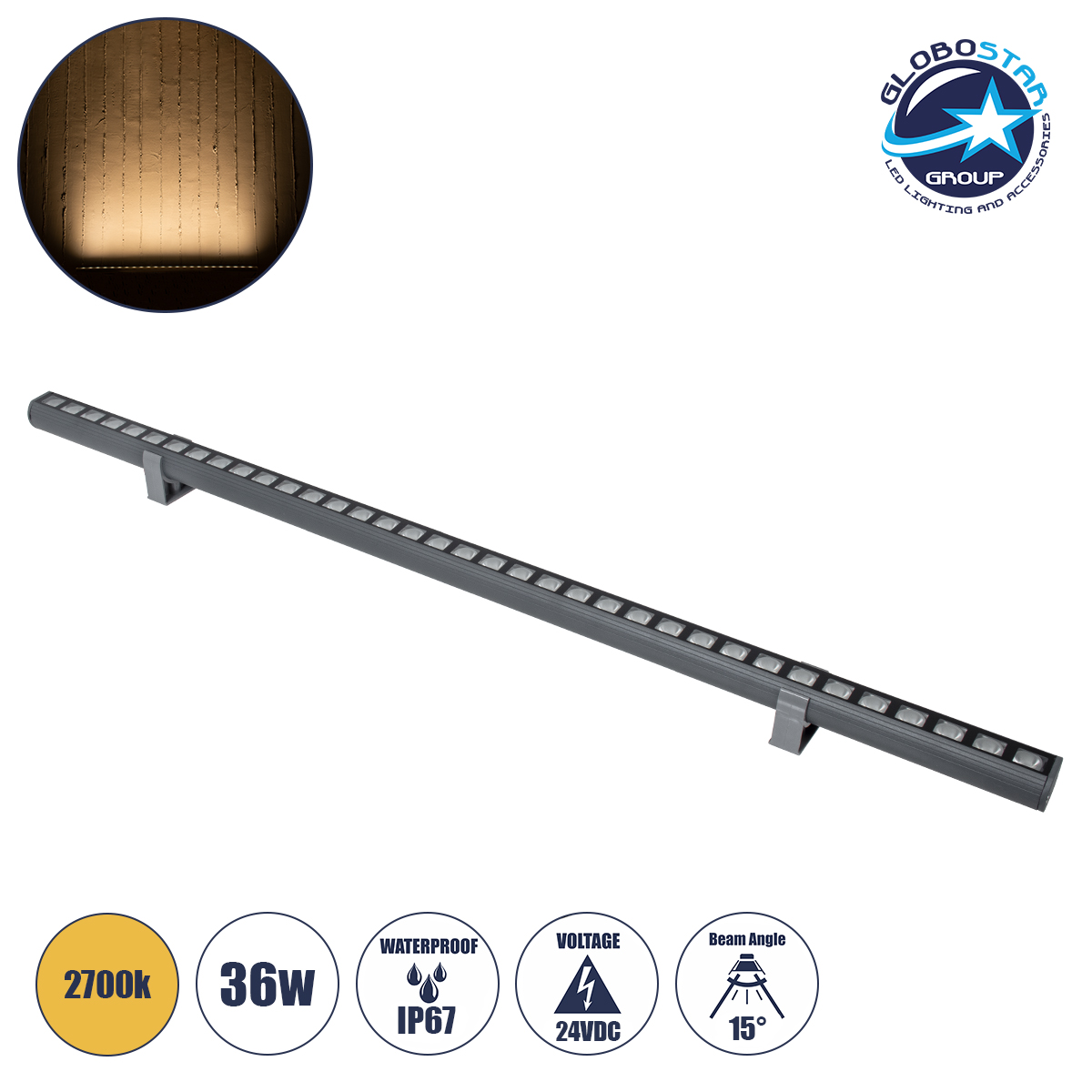 GLOBOSTAR® WASHERPANDA 90583 Μπάρα Φωτισμού Wall Washer LED 36W 3960lm 15° DC 24V Αδιάβροχο IP67 Θερμό Λευκό 2700K Dimmable – Bridgelux SMD Chip – Γκρι Ανθρακί – Μ100 x Π4 x Υ3.5cm – 3 Χρόνια Εγγύηση