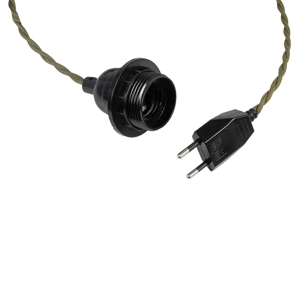 GLOBOSTAR® WHIP 77667 Μοντέρνο DIY Φωτιστικό με Πλεκτό Καλώδιο, Ντουί 1 x E27, Διακόπτη On/Off & Πρίζα AC 220-240V IP20 – Χακί & Μαύρο – Μ150 x Π5.8 x Υ5.8cm