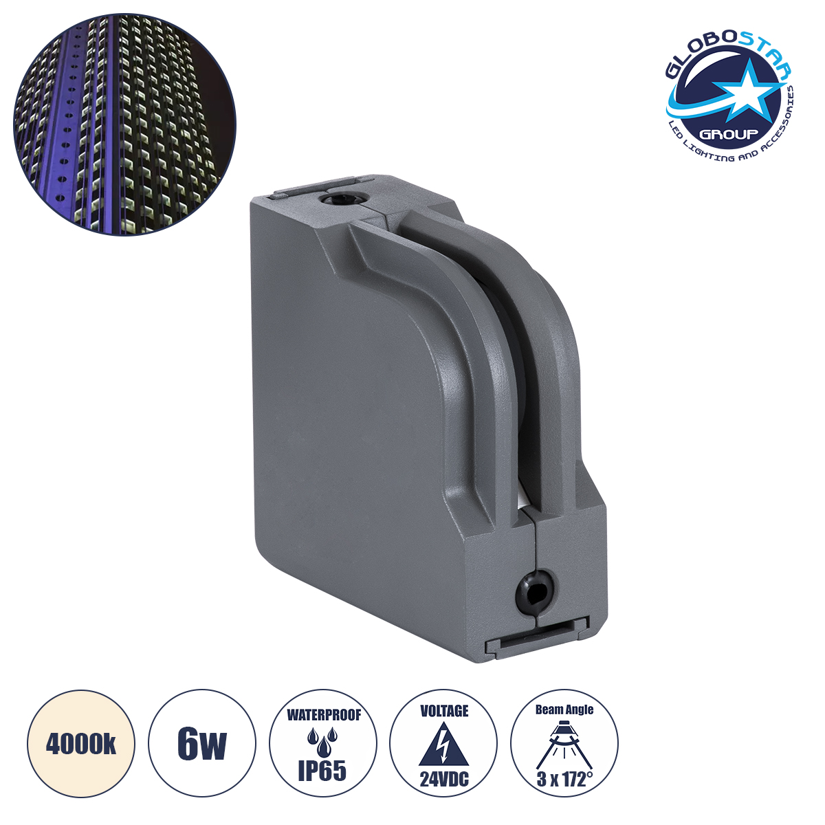 GLOBOSTAR® WINDOWCORNA 90113 Γωνιακό Φωτιστικό Ανάδειξης Παραθύρων LED 6W 570lm 3°x172° DC 24V Αδιάβροχο IP65 Φυσικό Λευκό 4500K Dimmable – CREE XPE Chip – Γκρι Ανθρακί – Μ12 x Π4 x Υ12cm – 3 Χρόνια Εγγύηση