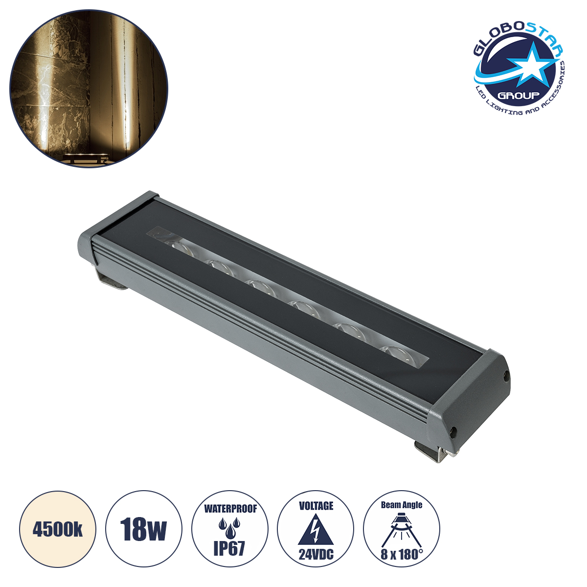 GLOBOSTAR® WINDOWRAFI 90728 Φωτιστικό Ανάδειξης Παραθύρων LED 18W 1710lm 8°x180° DC 24V Αδιάβροχο IP67 Φυσικό Λευκό 4500K Dimmable – CREE XPE Chip – Γκρι Ανθρακί – Μ30.5 x Π6.7 x Υ4.5cm – 3 Χρόνια Εγγύηση