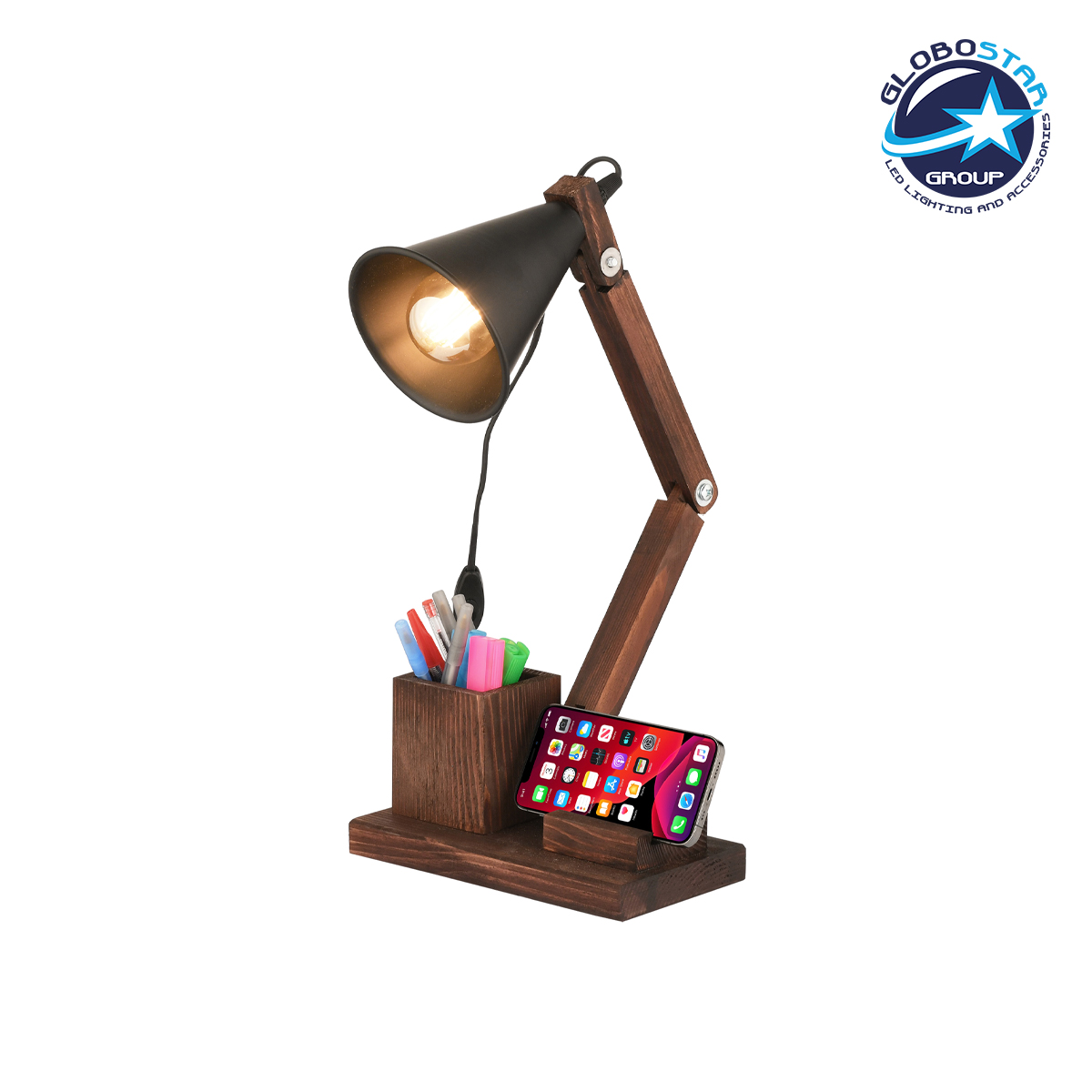 GLOBOSTAR® WOODY 202-0060 Μοντέρνο Επιτραπέζιο Φωτιστικό Πορτατίφ με Ντουί 1 x E27 AC 220-240V IP20 – Καφέ & Μαύρο – Μ40 x Π40 x Υ27cm
