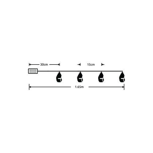 Τα χριστουγεννιάτικα λαμπάκια LED Modee εσωτερικού χώρου αποτελούνται από 10 LED θερμού λευκού φωτισμού 2700 Κ.Με καλώδιο μήκους 1.65 μέτρων (μαζί με το φίς) και η απόσταση μεταξύ των LED είναι 15 εκατοστά.Λειτουργούν με μπαταρίες 2xAA (1,5V) (δεν περιλαμβάνονται)ΛΕΠΤΟΜΕΡΕΙΕΣ ΠΡΟΪΟΝΤΟΣΤύπος φωτισμού: ΜονόχρωμοςΥλικό: ΠλαστικόΕίδος: Χριστουγεννιάτικα φώταΠηγή ενέργειας: 2xAA μπαταρίες (δεν περιλαμβάνονται)Ισχύς: Μέγ. 0,15WΤάση εξόδου: 3V DCΡύθμιση φωτεινότητας: ΌχιΜήκος: 1,35 μέτραΒαθμός στεγανότητας: IP20Αριθμός LED: 10 LEDΧρώμα καλωδίου: ΔιάφανοΛΕΠΤΟΜΕΡΕΙΕΣ ΣΥΣΚΕΥΑΣΙΑΣΤύπος συσκευασίας: Έγχρωμη συσκευασίαΠοσότητα/συσκευασία: 1Διαστάσεις/συσκευασία: 150x90x110mmΠοσότητα/κιβώτιο: 24Διαστάσεις/κιβώτιο: 470x380x240mm