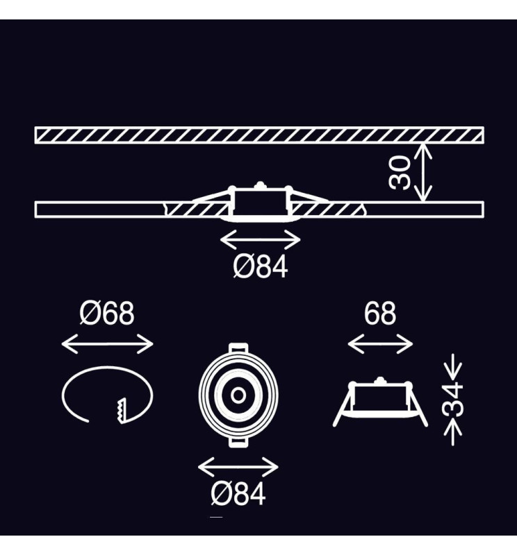 Rated Power6w Nominal Voltage220-240V ColourRGB+CCT CRI – Chromatic Rendiment Index80 Construction MaterialPMMA Luminosity-Lm520Lm Number & Type of LEDsCOB Beam Angle (º)Primary -120º – Secondary 180º Luminous Efficiency (Lm/W)90Lm/W CertificationsCE – ROHS IPIP44 Diode Life Expectancy (H)100.000 Dimensions (mm)Ø84 x H34mm Power Factor (PF)0.95 Frequency (Hz)50/60Hz On/Off Cycles100.000 Cut-out Size (mm)Ø68mm Control modesCONTROL + INFRARED Driver includedYES Energy Rating (2021-UE-2019/2015)A+ Energy Rating (2023 – UE-2019/2015)F Warranty Years3