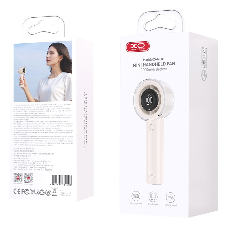 XO MF81 Ρυθμιζόμενος Ανεμιστήρας Χειρός 13.000 RPM 3000 mAh