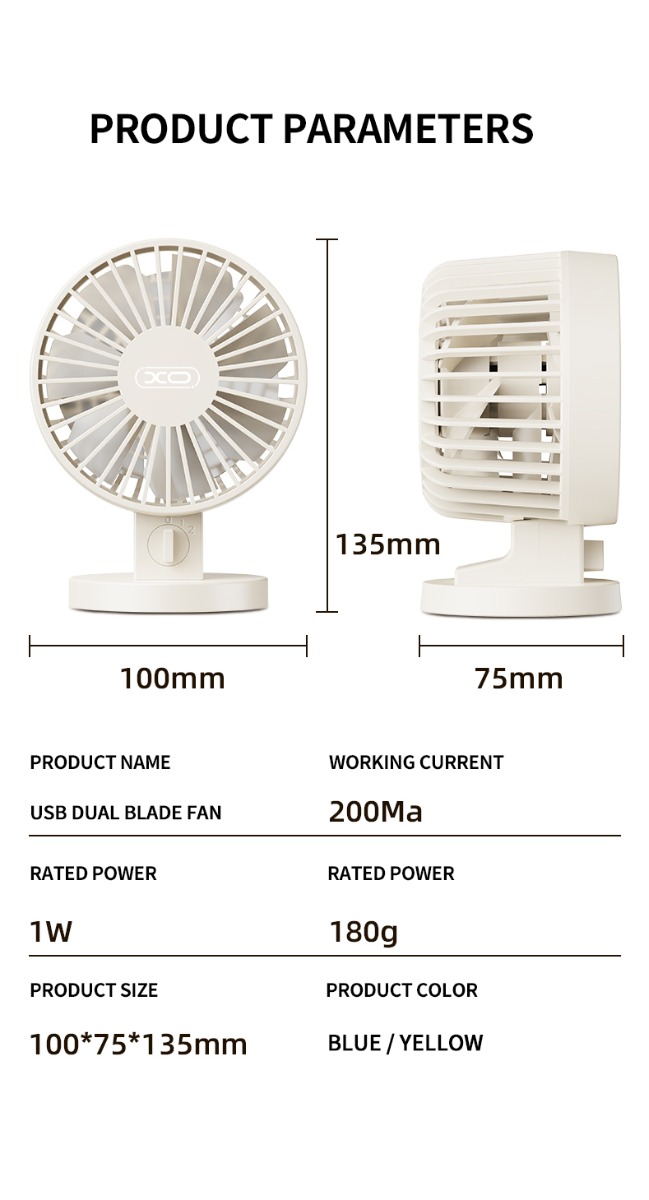 XO MF82 Επιτραπέζιος Ανεμιστήρας USB Διπλής Λεπίδας
