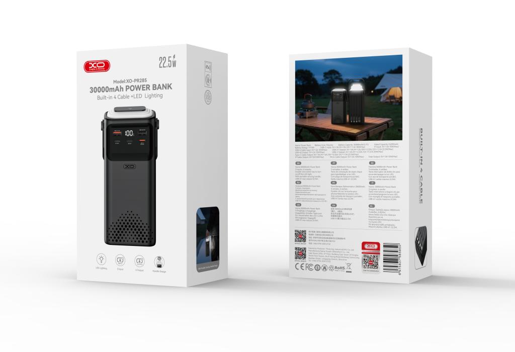 XO PR285 Powerbank PD20W & QC22.5W με 4 Ενσωματομένα Καλώδια & Φωτισμό LED 30.000mAh